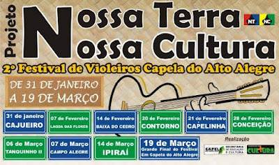 O Projeto Nossa Terra Nossa Cultura 2ª Edição, terá inicio neste domingo dia 31 de janeiro de 2010 a partir das 09:00 da manhã, no Povoado de Cajueiro.